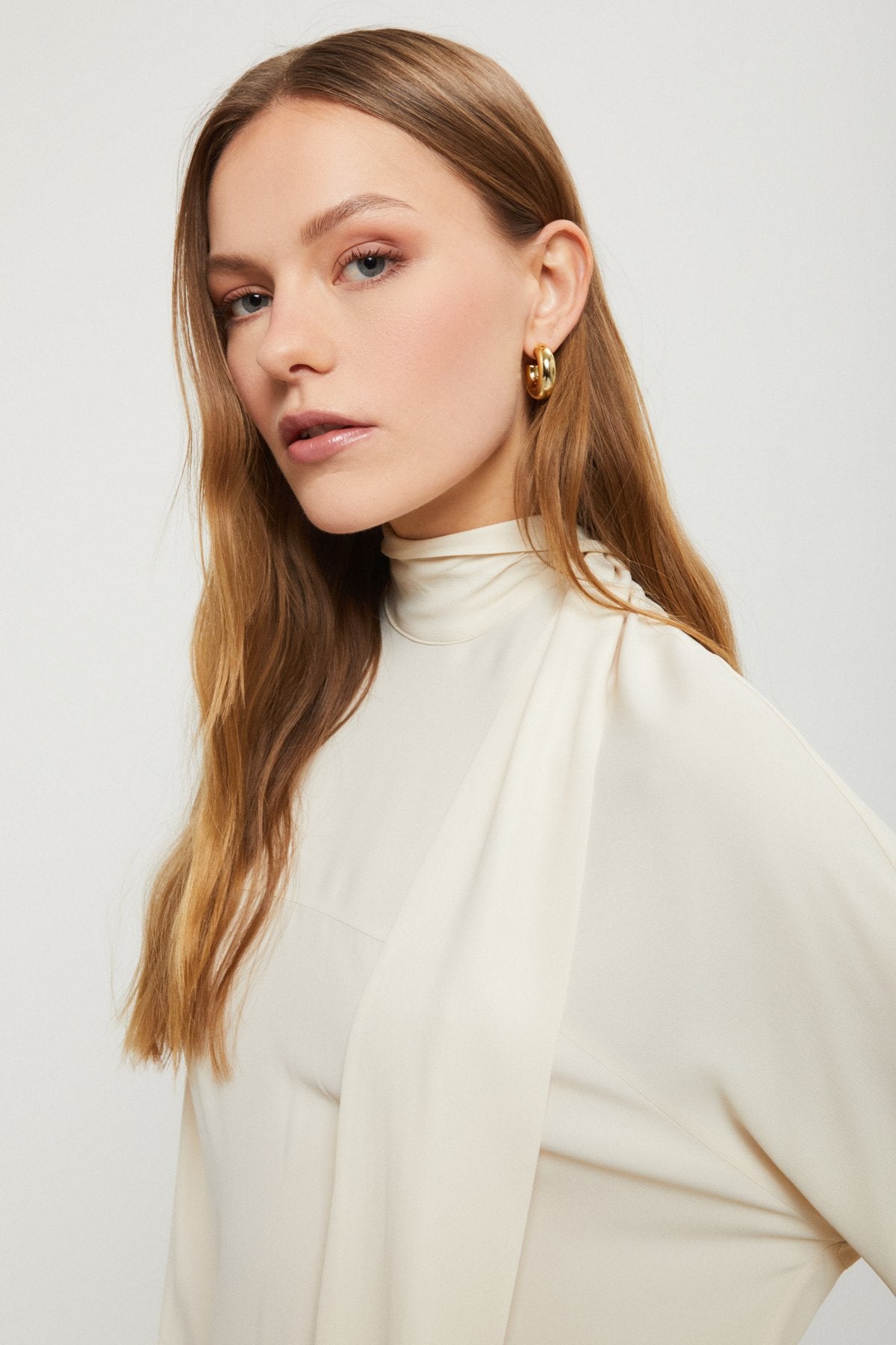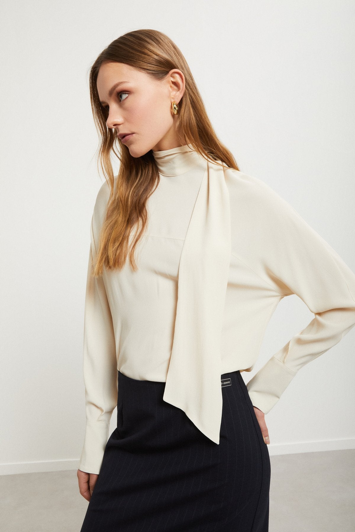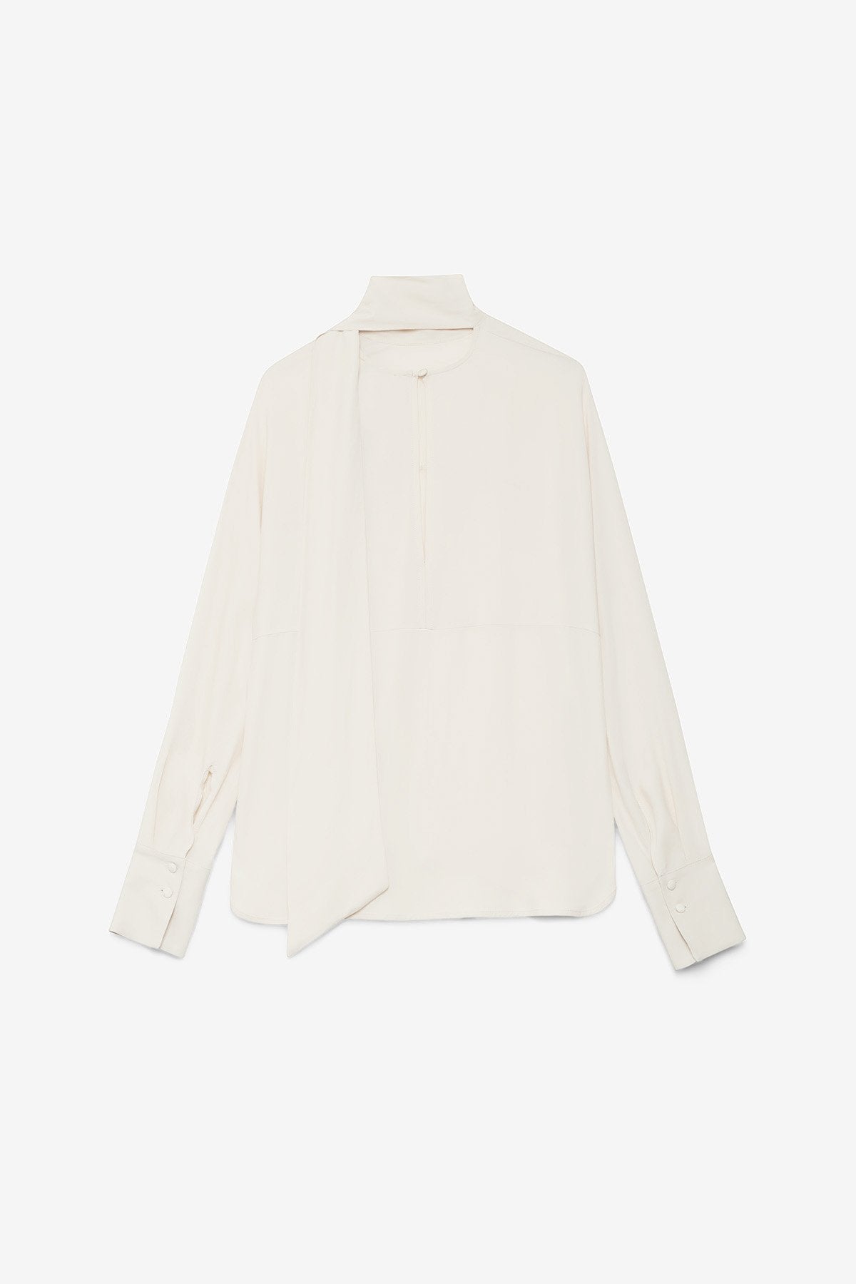 Blusa fluida in crepe misto seta con scollo a V. Color latte.