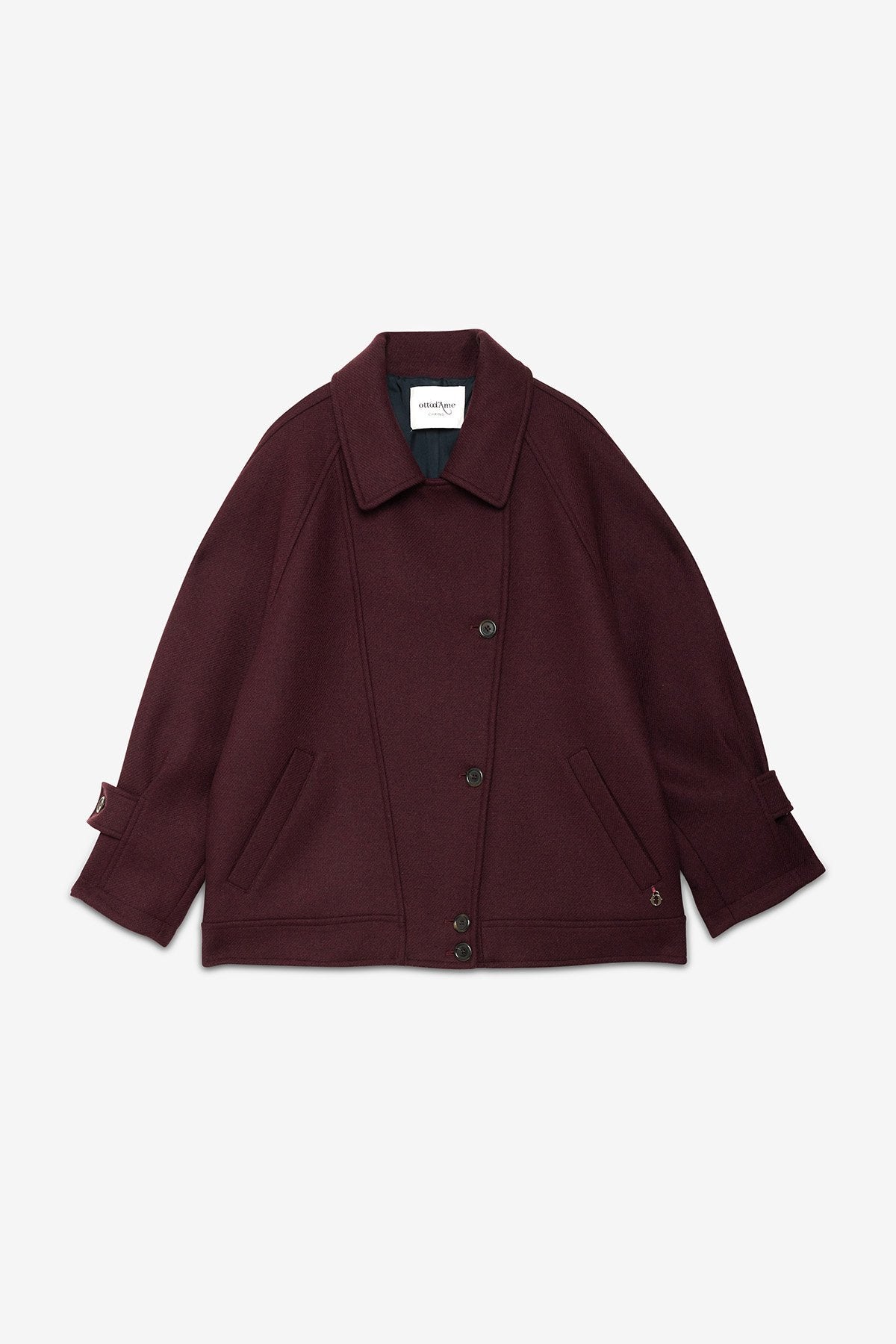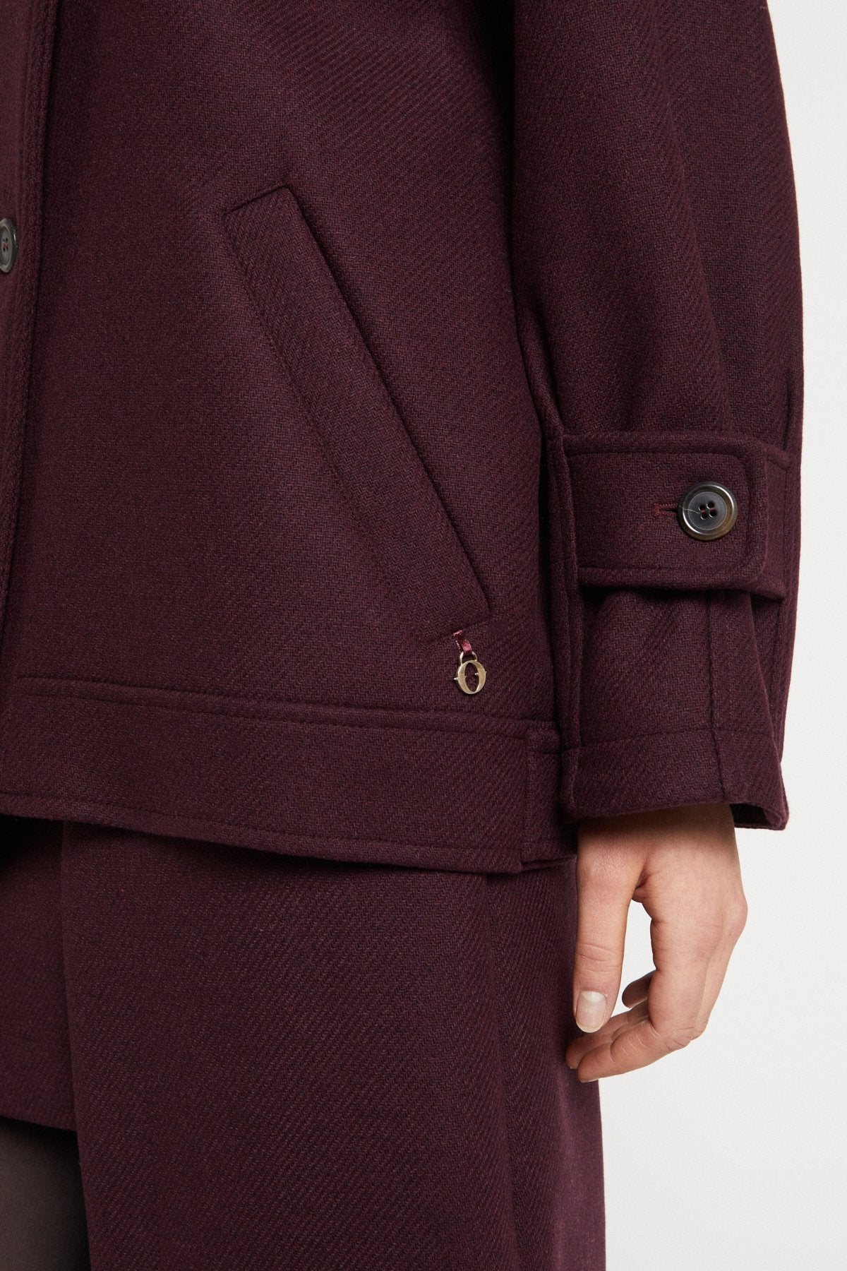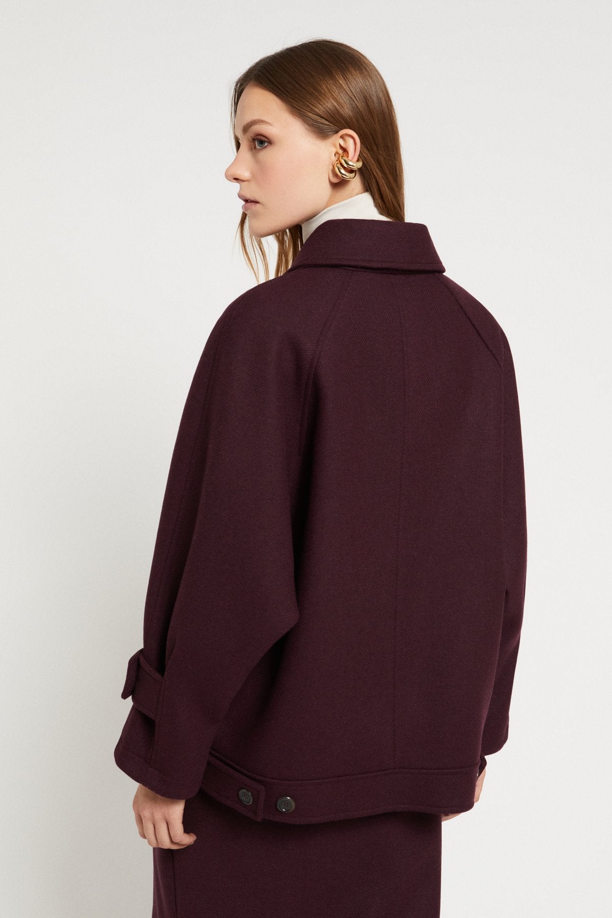 Giacca modello bomber in misto lana con bottoni.